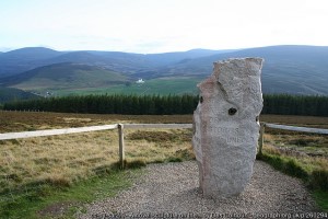 The Moment in Time sculpture, by Louise Gardiner, is an inscribed standing stone which provides telescopic views of the distant Corgarff Castle.