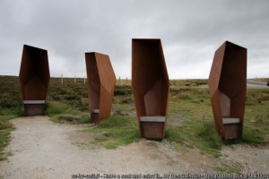 The Watchers by John Kennedy are four hand-crafted sculptural iron seats providing shelter from the wind, and stunning views over the Cairngorms.